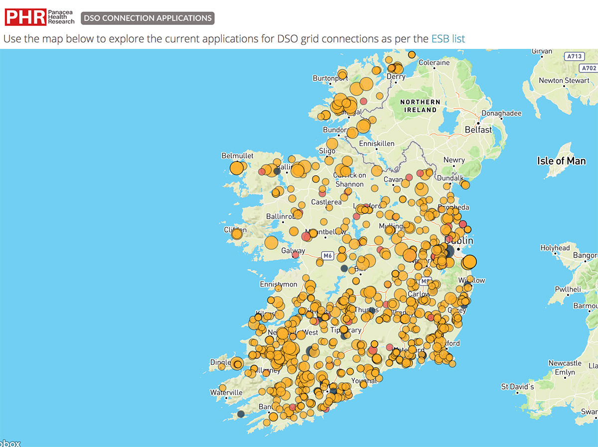 Use the map below to explore the current applications for DSO grid connections as per the ESB networks applications list